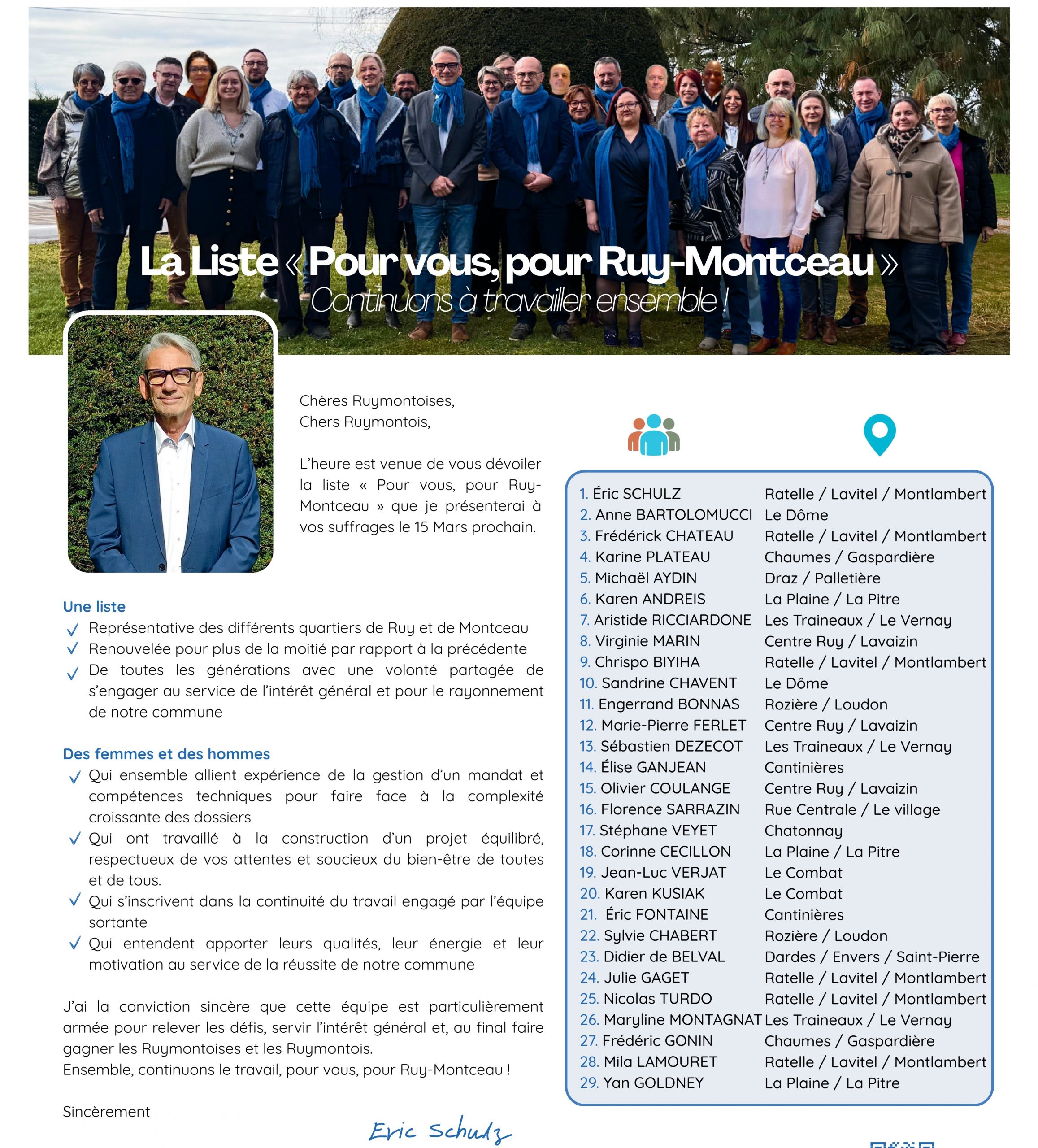 Elections municipales 2026 – Pour vous pour Ruy-Montceau