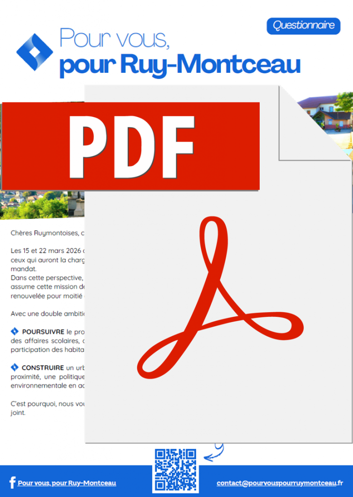L’équipe « Pour vous pour Ruy-Montceau » vous propose d’exprimer vos attentes en répondant au questionnaire en lien sur cette page (en ligne ou à télécharger). D’avance un très grand merci pour votre participation très appréciée et très utile pour coller le plus près possible à vos besoins.